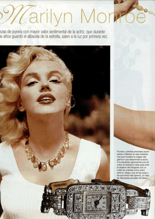 1950年代的摩纹,绝对是佼佼者。摩纹的一些高级珠宝女表曾是上流社会的寒暄之表。此中做为出名的就是女星梦露曾具有的摩纹钻石女表。